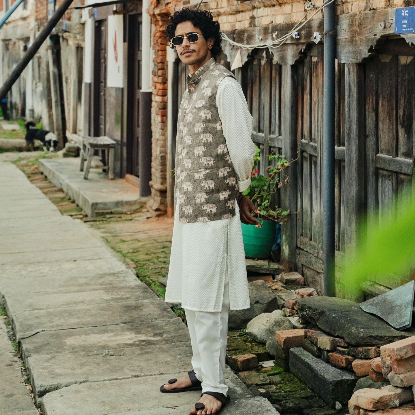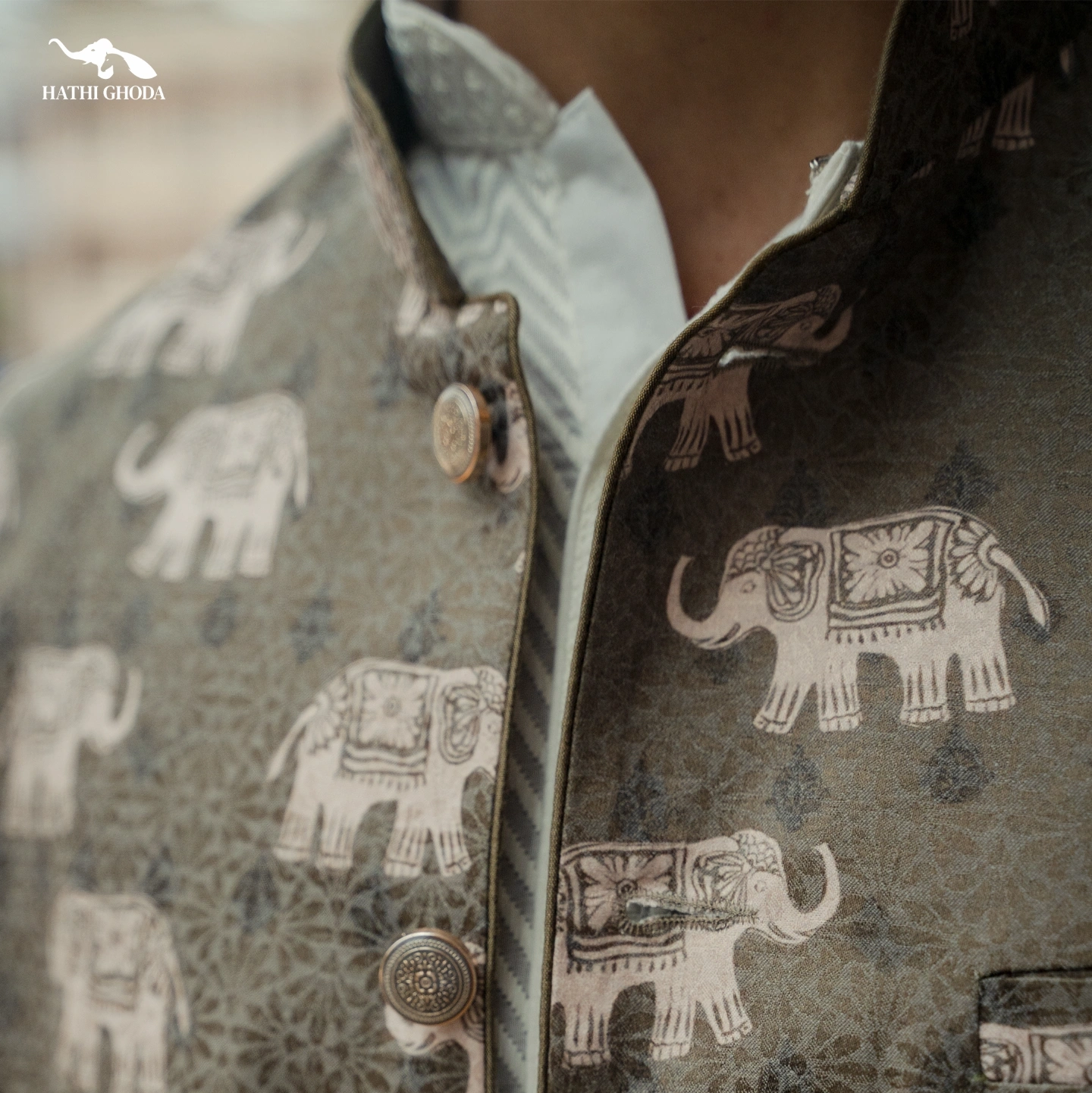 Olive elegance & Hatti Print , made to stand out. A waistcoat that adds timeless charm and sharp style to every look.